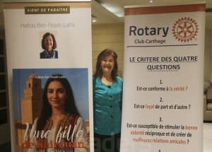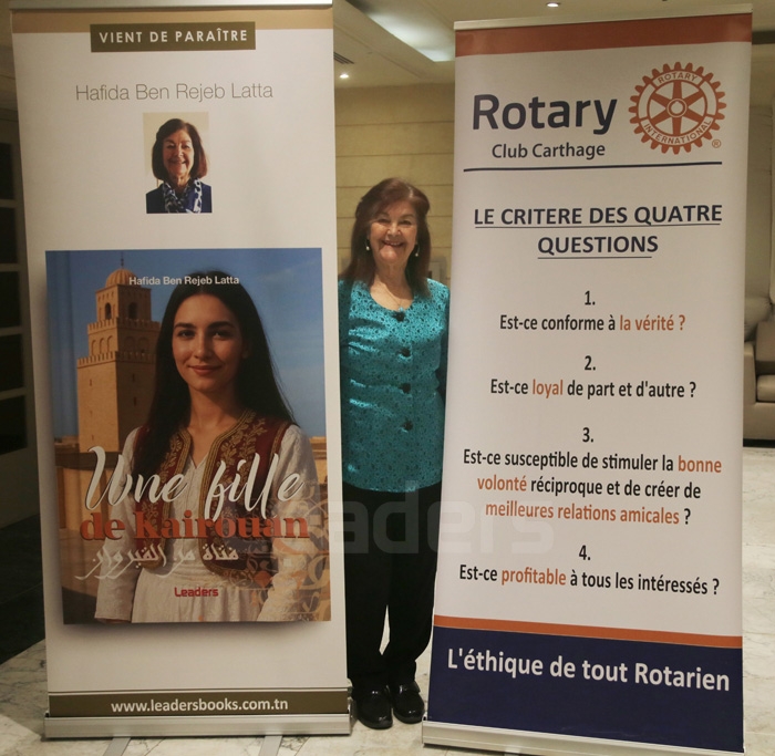 En apothéose d’un mois de présentation et de dédicace entre la capitale et différentes régions de Tunisie, Hafida Ben Rejeb Latta était l’invitée de quatre clubs Rotary. Vendredi, un interclub groupant les rotariens de Tunis, Carthage et la Marsa était l’occasion de débattre de son livre «Une fille de Kairouan» (Editions Leaders). Dimanche, ce fut le club de Sousse qui a pris le relais.