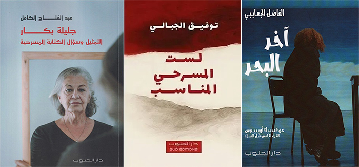 Trois livres édités par la maison Sud Édition, qui a lancé depuis plus de 20 ans, une collection «Théâtre vivant» (المسرح الحي), avec pour ambition de publier dans le texte les pièces de théâtre tunisiennes, ont fourni l’occasion de cette rencontre. Restée longtemps timide en termes de quantité, cette collection s’est enrichie depuis peu d’une étude universitaire sur l’œuvre de Jalila Baccar réalisée par Abdelfattah El Kamel, du texte de la pièce/chef d’œuvre à grand succès, de Fadhel Jaibi «Le bout de la mer» آخر البحر, et des mémoires de Taoufik Jbali fondateur de l’espace «El Teatro» depuis 40 ans et intitulés «Je ne suis pas l’homme de théâtre qui convient» (لست المسرحي المناسب).