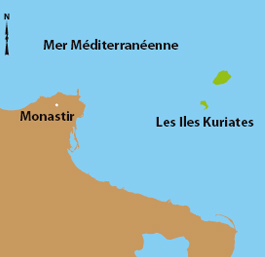 Les îles Kuriat sont situées au nord-est du Cap de Monastir, à environ 20 km du continent. Ce sont deux petites îles couvrant 270 ha environ pour Qurya El Kbira, et 50 ha pour Qurya Sghira. Ces petites émergences de terre constituées par des grés appartiennent à des hauts fonds et occupent une position pseudo-anticlinale au milieu d’un fossé comblé par une formation sédimentaire très épaisse. Elles sont caractérisées par une morphologie plate et basse. Ces îles constituent une escale migratoire pour une avifaune d’importance internationale, comme le goéland railleur, classé comme espèce vulnérable. Elles sont l’un des principaux sites de nidification de la tortue Carettacaretta au sud de la Méditerranée, et de ce fait constituent un écosystème vulnérable.