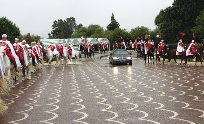 Le spectacle est fascinant. Un groupe de cavaliers assure, selon les dispositifs, des haies d’honneur dont le nombre varie en fonction de la distance à parcourir. La formation peut compter six à douze cavaliers, voire plus. Mais, le plus majestueux, c’est sans doute l’escorte de la voiture officielle par la cavalerie montée. Le véhicule emprunté par le chef de l’Etat et son hôte est précédé d’une escouade de cavaliers, le commandant en tête. L’exercice n’est pas facile. Ces cavaliers ne se contentent pas de monter leurs chevaux mais jouent aussi de la musique. Une deuxième escouade escorte le véhicule de part et d’autre, alors qu’une troisième, formée de lanciers, le suit. Le nombre des cavaliers doit être soigneusement calculé en fonction de plusieurs paramètres. La tenue de parade est flamboyante et la chorégraphie impressionnante.