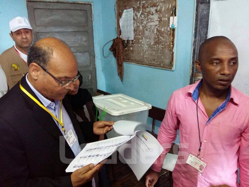 Le jour de la proclamation des résultats, l'UA a appris de sources locales que la Commission électorale nationale indépendante (CENI) subit des pressions énormes de part et d'autre ce qui a causé un retard de l'annonce des résultats plusieurs heures. Dr Marzouki a décidé alors d'aller au siège du l'Assemblée nationale où se déroulaient la délibération de la CENI pour encourager les responsables de cette instance et les rassurer en leur rappelant les principes de la charte africaine sur la transparence des élections. Deux heures plus tard, les résultats ont pu être annoncés.