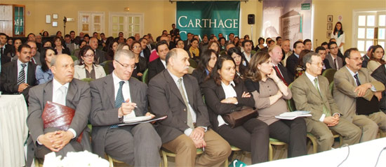 Devant un auditoire particulièrement attentif, formé d’intermédiaires en bourse, d’analystes financiers et de gestionnaires d’OPCVM, les fondateurs de Carthage Cement, MM. Belhassen Trabelsi et Lazhar Sta, ont présenté jeudi après-midi dans les détails les contours de ce qu'il faut bien considérer comme la plus grande levée de fonds sur le marché financier tunisien (130 MD) pour le financement de la première cimenterie privée, devant représenter le plus grand investissement privé en Tunisie (près de 750 MD). D’emblée, M. Trabelsi, président du conseil d’administration, a montré combien il était heureux de revenir en bourse avec « un projet exceptionnel et un titre précieux qui ne manqueront pas de démontrer toutes leurs performances, grâce à un concept novateur, sur un marché demandeur, et déployant une ingénierie de pointe. »