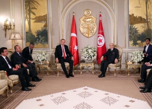 De son côté, le président Erdogan s'est engagé d'aider à la réduction du déficit de la balance commerciale avec la Tunisie et a fait part de l'intention de son pays d'accorder un prêt de 300 millions de dollars à la Tunisie. Evoquant la question d'El Qods, il a déclaré que le changement de statut de cette ville était une ligne rouge pour la Turquie. Abordant la crise syrienne, il a qualifié Bachar El Assad de « terroriste » avec lequel «il est impossible de dialoguer».