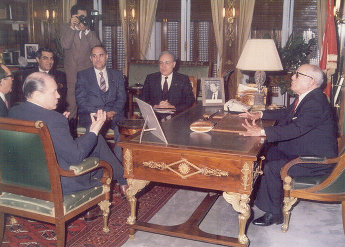 Le mercredi 5 août 1987, soit trois jours après les attentats, le Président devait accorder une audience au Premier ministre à Skanès. Celui-ci arriva vers neuf heures. Zine Ben Ali l’avait précédé au palais et s’était installé dans la salle à manger, devant une tasse de café. Aucune audience avec le ministre de l’Intérieur n’était prévue ce jour-là. J’avisai le Président de l’arrivée de Rachid Sfar. Il se rendit à son bureau où je le rejoignis avec le Premier ministre. Rachid Sfar proposa alors au Président la constitution d’un «comité constitutionnel de la République tunisienne», sorte de Comité des Sages, comprenant dix membres choisis, disait-il, par le Président de la République et appelé à le seconder dans l’exercice de ses fonctions afin d’alléger sa charge.