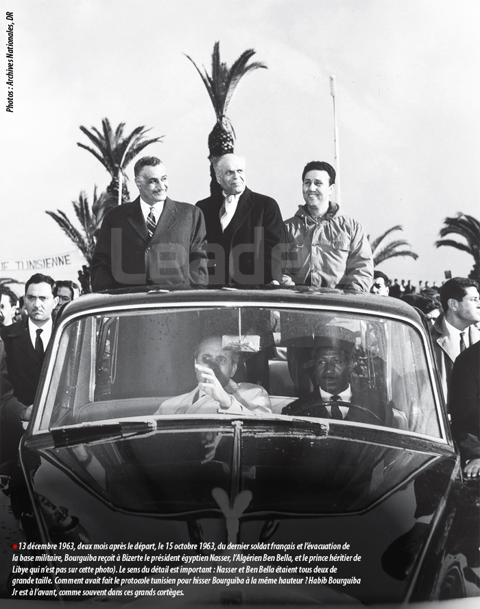 En commémoration du dix-neuvième anniversaire de sa disparition, Leaders a choisi deux angles. Après avoir publié, lors des célébrations précédentes, la plainte qu’il avait adressée au procureur de la République depuis Monastir contre Ben Ali, des témoignages de ses médecins et visiteurs sur «les derniers jours de Bourguiba», nous mettons à la disposition des lecteurs une série de photos grâce notamment aux Archives Nationales, pour la plupart inédites, avec les grandes figures mondiales de son époque. On le retrouve avec le vice-président américain Richard Nixon (en 1957), puis le président américain Eisenhower, lors de sa visite à Tunis en décembre 1959, l’unique à ce jour de celle d’un président des Etats-Unis, le Roi Mohamed V, puis son fils et successeur le Roi Hassan II, le Général de Gaulle à Rambouillet, les présidents Ahmed Sukarno (Indonésie), en 1964, Kwame Nkrumah (Ghana), Gamal Abdel Nacer, Ahmed Ben Bella, l’Empereur Hailé Sélassié (Ethiopie) et le maréchal Josip Broz Tito (Yougoslavie), lors d’une visite officielle à Belgrade en 1965. Mais aussi, Pierre Mendès-France, l’ancien président du conseil des ministres français.