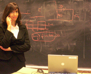 Ensuite, c’est le grand départ pour Lyon, tout d’abord, où elle réalise son Projet de fin d’études dans le laboratoire d’automatique et de génie de procédés LAGEP à l’Ecole supérieure de chimie physique électronique de Lyon (CPE) en même temps qu’un master de recherche en génie des systèmes automatisés en collaboration avec trois écoles (INSA Lyon, Ecole Centrale Lyon et Université Claude Bernard). L’opportunité de mener une thèse dans le prestigieux laboratoire de Génie Electrique de Grenoble (G2Elab) s’offre alors à elle. C’est sous la direction des Professeurs Seddik Bacha et Laurent Gerbaud et en collaboration avec plusieurs partenaires industriels dont EDF, Airbus, Renault, LMSImagine, et l’Institut Français du Pétrole (IFP) qu’elle a alors la chance de travailler une thèse dont le but était de développer un outil informatique qui permet l’obtention automatique des modèles exacts et moyens pour les convertisseurs statiques en électronique de puissance.
