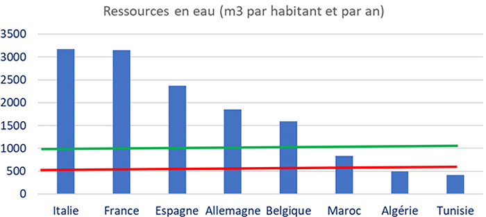• Seuil de pauvreté en eau : moins de 1000 m3 par habitant et par an.