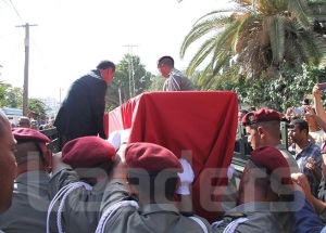 Du rarement vu à El Jallaz : il aura fallu pas moins d’une heure et demie pour que les derniers présentent leurs condoléances. Le régiment d'honneur fait sonner les clairons. Le drapeau national flotte sous un vent léger.
