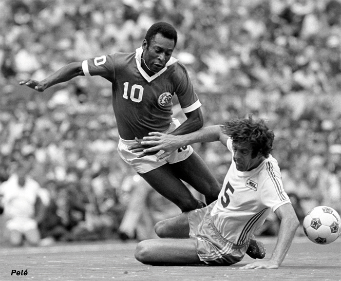 EdsonArantes Do Naccimento est le Roi Pelé. A Santos, il n’a pas mis beaucoup de temps pour s’illustrer. Même ses entraîneurs se sont rendus à l’évidence : ils ne peuvent rien lui apprendre. A moins de dix-huit ans, il s’offre une place de titulaire et conduit le Brésil vers un sacre longtemps caressé. Deux autres trophées suivent en 1962 et 1970, mais le destin le prive de faire une phase finale entière en 1962 et 1966. En 1966, il part en Angleterre sans ses coéquipiers, les dirigeants ayant pris la précaution de se prémunir contre une éventuelle catastrophe aérienne : s’assurer ou Pelé ou l’équipe. Le terrain en a décidé autrement.