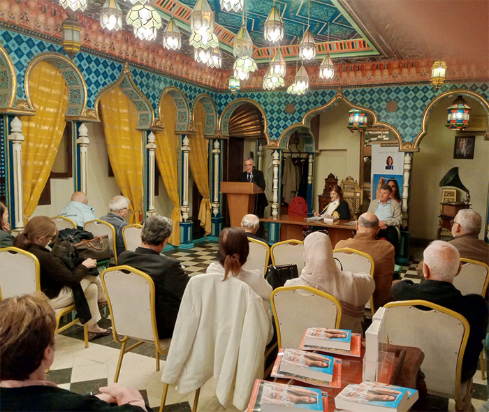 C’est un ouvrage épais de plus de 400 pages, où elle raconte sa famille, son enfance et sa vie. Un roman d’amour à Kairouan, et une leçon de courage. Dans la magnifique salle richement décorée de l’espace culturel Ben Rejeb, où le fondateur Mohsen Ben Rejeb a laissé ses empreintes, universitaires, parents et amis sont venus revoir leur chère Hafida, l’écouter et lui poser tant de questions. A l’initiative de cette rencontre, le Dr Ridha Kechrid, lui-même enfant prodige de la ville, dira comment lorsqu’il était ambassadeur de Tunisie en Espagne avait connu Hafida et découvert tout son rayonnement dans le petit village côtier près de Valence où elle passe avec son mari David une partie de l’hiver, emmenant avec elle un bout de son Kairouan. Il saluera la présence particulièrement de la doyenne de la fcaulté des Lettres, Leila Rammah et mentionnera des passages de la préface rédigée par Anissa Barrak. Khaled Saddem, universitaire et auteur de la postface du livre, fera une bonne synthèse qui donne envie de plonger immédiatement dans ce roman.