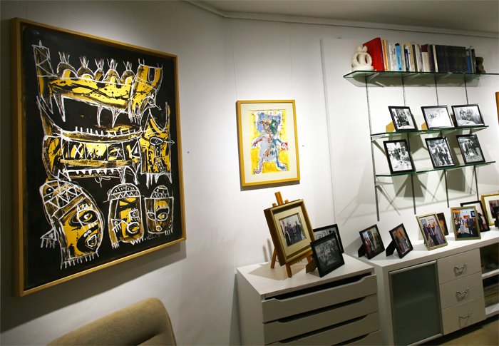 Puisant dans la propre collection constituée avec Ridha, Feyrouz Amouri a sorti pour cette exposition de « renaissance » des tableaux de Hatem El Mekki, Néjib Belkhodja, Abderrazak Sahli, mais aussi ceux de Nabili (Maroc), Stambouli et Amraoui (Algérie). Pour marquer cet évènement, l’Association Mohamed-Amouri a prêté des œuvres d’Aly Ben Salem. Voir de grandes figures maghrébines appartenant à deux générations successives, inscrites chacune avec son style dans une modernité plurielle, envoie un signal fort de ce que la galerie Artémis-Ridha Amouri est capable de monter.