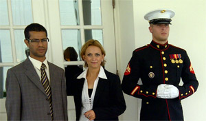 pour le conduire ainsi que Zahraa Said à la Maison Blanche. L’émerveillement est total. Accueil courtois mais strict par les Marines, contrôles de sécurité et les voilà introduit chez la Conseillère du Président Obama pour les Droits de l’Homme. Très attentionnée avec ses hôtes, elle leur pose plein de questions, histoire de les préparer à l’audience présidentielle. Spécialiste en langue allemande, Jamel se débrouille un peu en anglais, mais heureusement qu’une interprète lui sera d’une grande assistance. A 11h30 précises, une assistante du président les introduit dans le fameux bureau ovale : le Président Barack Obama leur réserve un accueil des plus chaleureux comme s’il les connaissait de longue date !