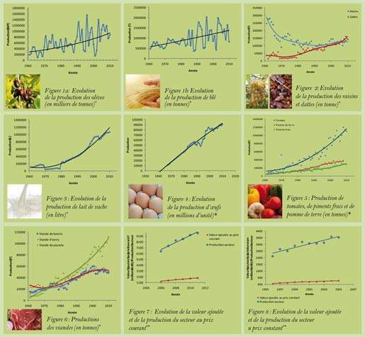 Par ailleurs, on constate que la production agricole est croissante pour la plupart des produits (figures 2, 3, 4, 5, 6) à l’exception de la production des raisins caractérisée par une chute importante entre 1960 et 1980 qui peut être liée à une décision politique.